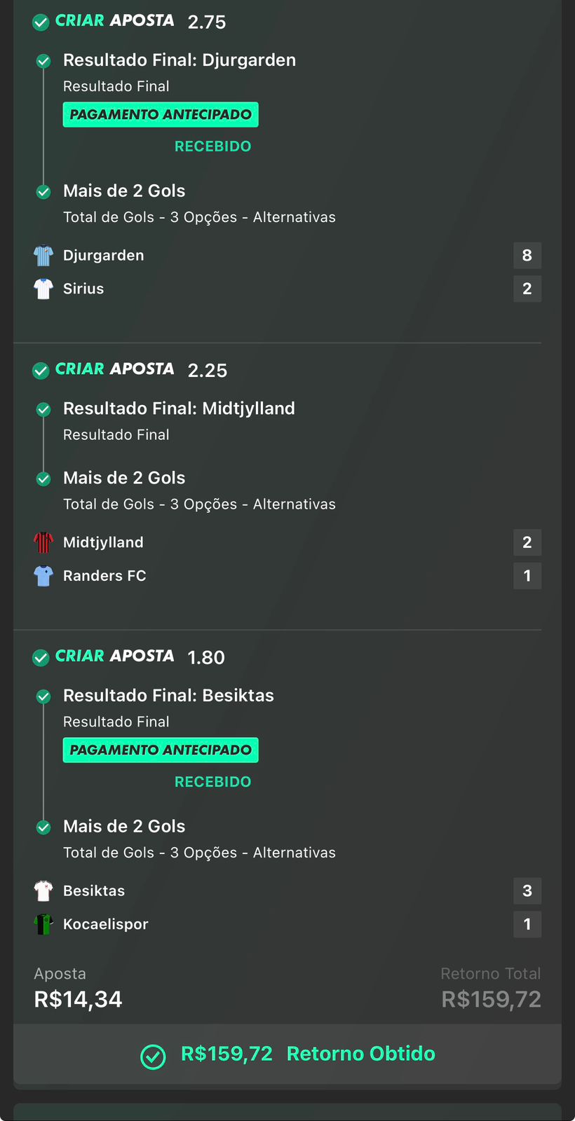 Mais um dia, mais um green. A IA da SIX leu o jogo antes de ele começar. E o resultado… tá aí.
